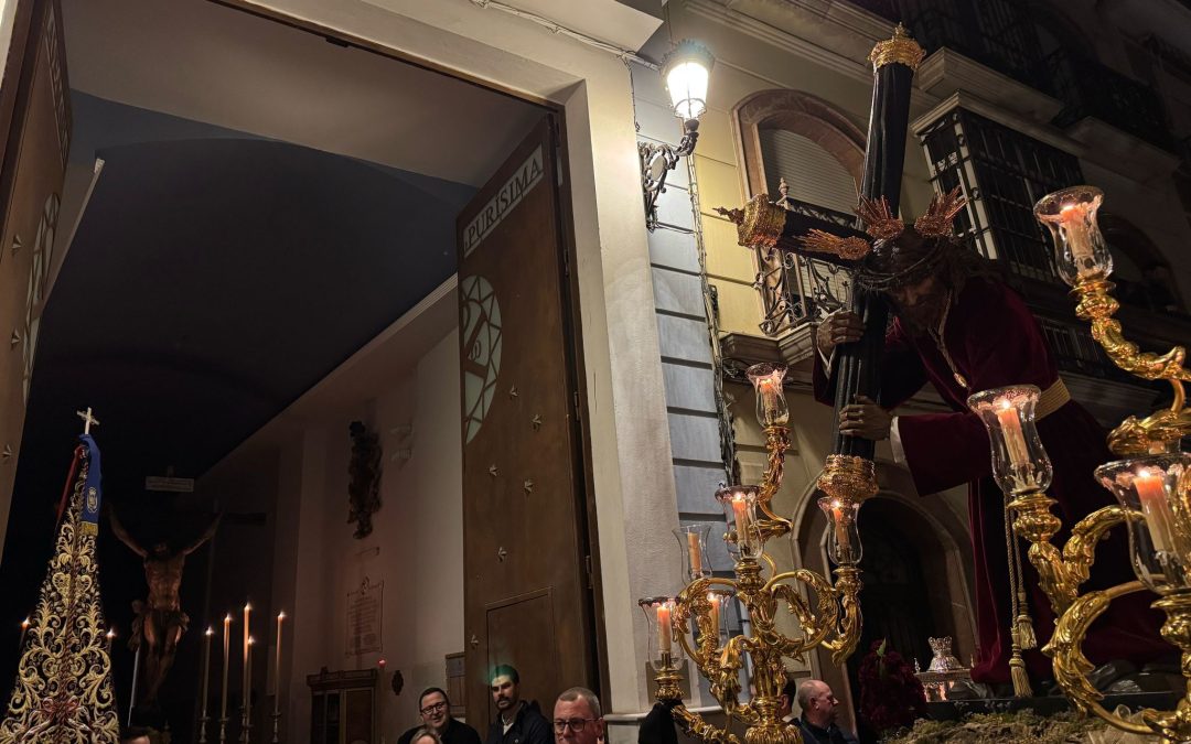Nuestro Padre Jesús Caído discurrió hasta la Parroquia de Santo Domingo de Guzmán, pasando después por el Oratorio de la Purísima Concepción, de la Fundación Aguilar y Eslava, donde la aparición de la lluvia obligó a regresar aceleradamente a la Capilla, refugiándose unos momentos en la Iglesia de San Juan de Dios.